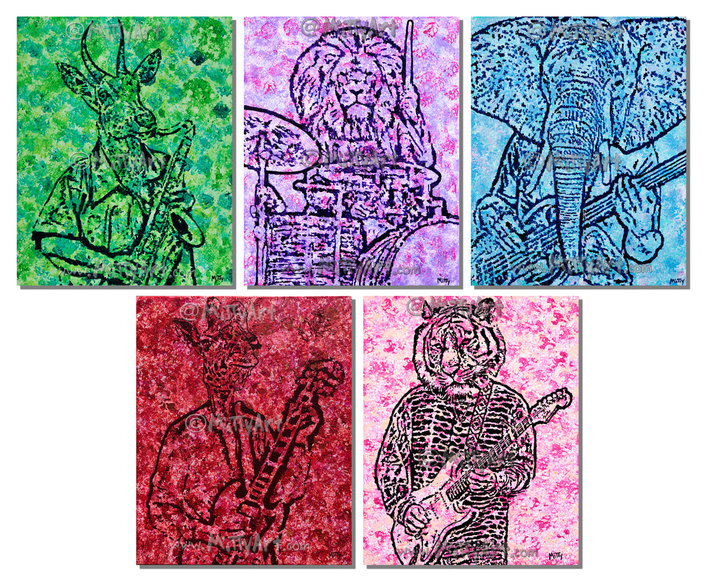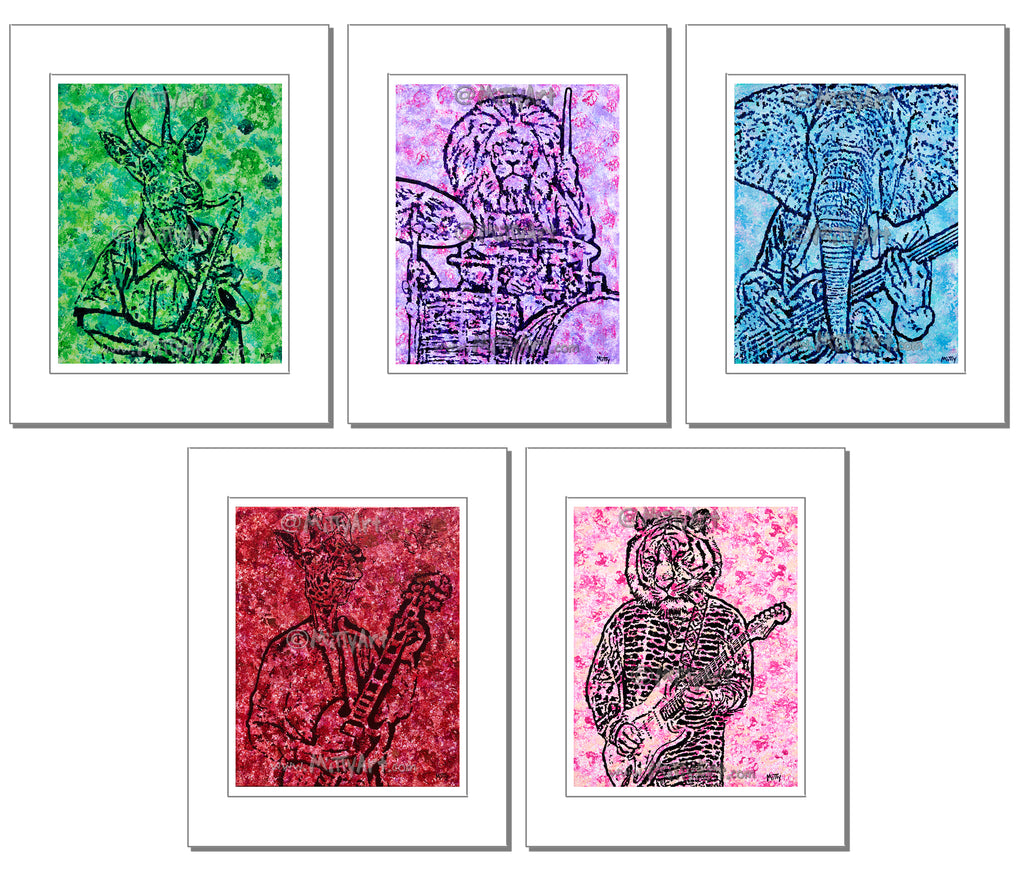 This is the complete set in my AniMusic Mash series where I turn animals into musicians. Full set includes Saxy Gazelle, Drum King, EleBass, GuitRaffe, TiGuitar.