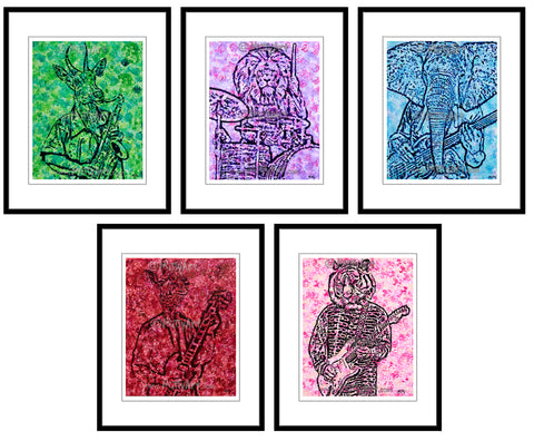 Complete Set. Signed & numbered limited edition giclee prints on archival watercolor paper available in 2 sizes, matted and ready to frame. Also available framed. Limited Edition of 115pcs for each size. All 5 pieces will be the same edition # (while supplies last).