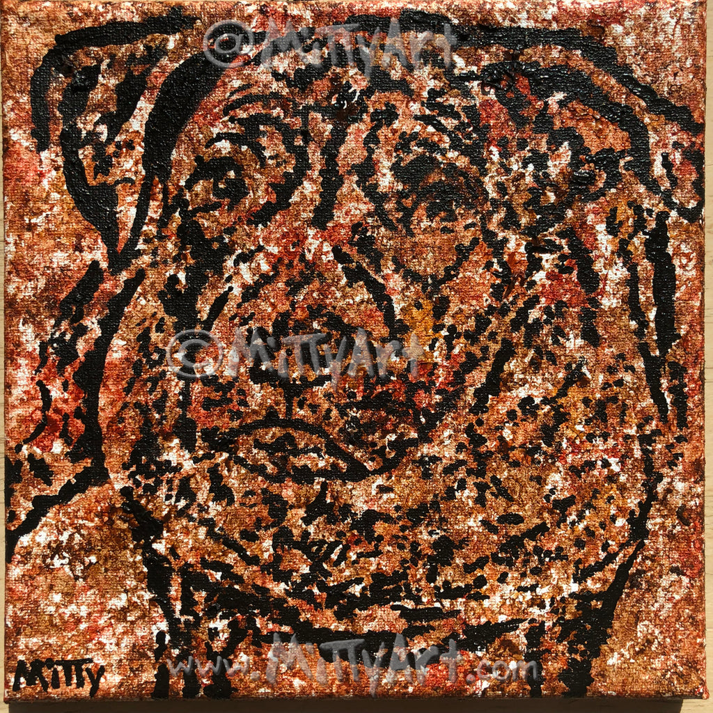This acrylic painting with a heavy textured background commemorated a lost companion. Contact me to commission your dog!