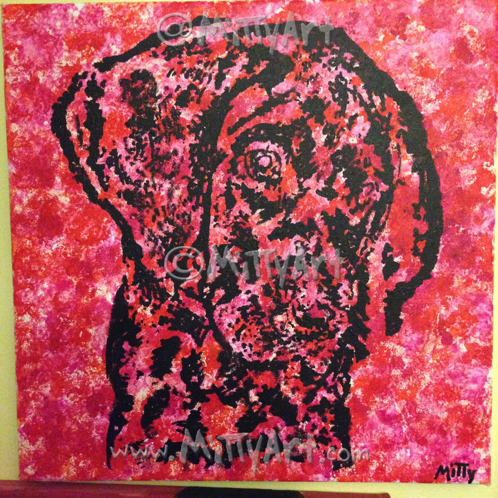 This acrylic portrait of Wilson the black lab is painted with a textured background. To see other paintings with textured backgrounds click here.