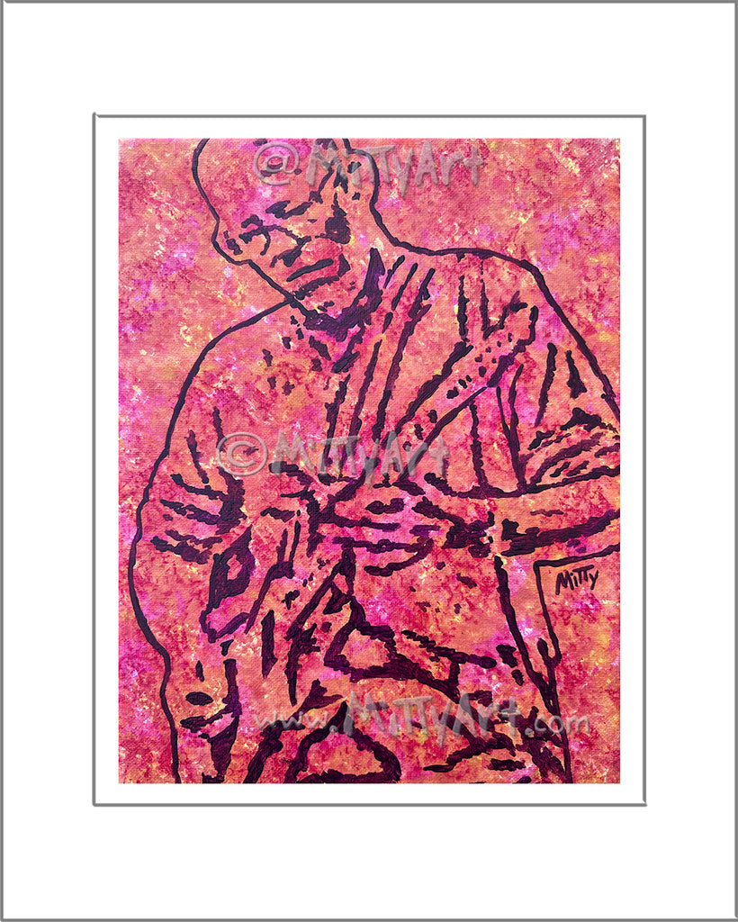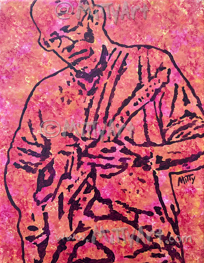 The OG is 11"x14" textured acrylic on 3/4" canvas and is available as part of a full set by clicking here. Please email mitty@mittyart.com for any questions you have related to this painting.